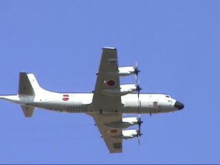 P3C対潜哨戒機。旅客機を改造したというのがすぐにわかります。以前に、石狩湾で訓練を