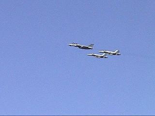 こうしてみるとキティホークの艦上機のオンパレードというところでしょか。とくに最後に岩国から飛来したF−18は何も しないで単にパスして帰りました。燃料の関係か不明ですが、一つくらい芸を見せて欲しかった。