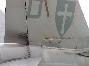 左翼のポットの蓋が開いています。何でしょうか?。 垂直尾翼にサビが浮いています。