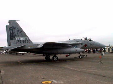 世界最強の戦闘機であるが、価格も高い。従ってF15を導入している国は数少ない。 主翼下に今回の航空祭を記念したワッペンを貼り付けていた。