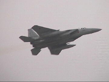 ほとんどの演技は中止されたので、出番が来ると観客の前を地上滑走するのみで終わり。 サービスにスピードブレーキをパタパタさせていた。このブレーキは最高速度でも使用できるの? もし、わかる人がいれば教えて下さい。ローパスするF15(右)