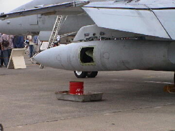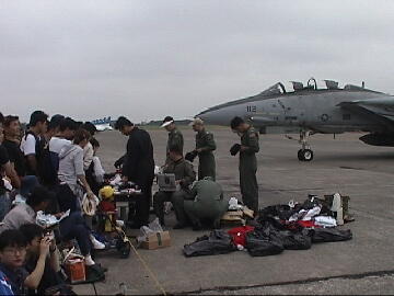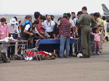 F4の尾翼をしかっりと触ってきました。この尾翼の特徴は逆キャンバーになっています。(左) 海兵に負けじと海軍も店開き(右)