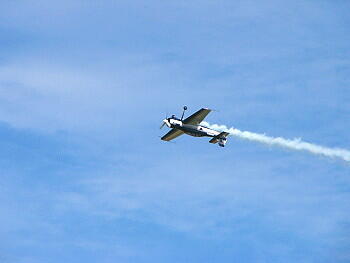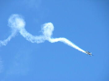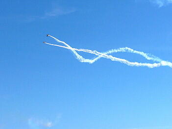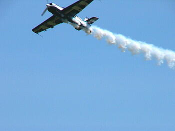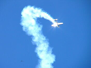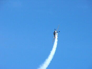 プロペラの後流でスモークが渦巻き状になっているのがよくわかります