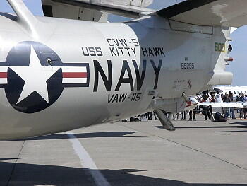 たった4本のピンで主翼を支えている E2Cの兄弟機であることがよくわかる