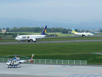 旭川空港にSSRが設置されたため、スカイマークがタッチダウンするとエアドゥがすでに最終コースに 進入してきた。2機が連続して着陸してくるとは今まで見られなかった光景です。