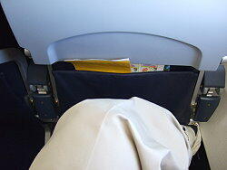 初めてスカイマークに搭乗しました。シートは革張り、飲み物は100円、酒類は300円の有料。 シート幅は狭いが、ピッチは広く、足を組んでも余裕でした。