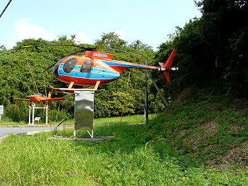 入口前に展示されているヒューズ500 アメリカンエビエーションAA-1ヤンキー