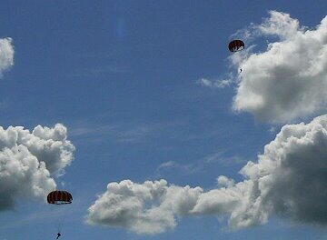 パラシュート降下を見せてくれました。木更津から来たのかも。