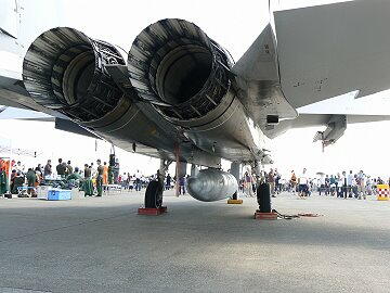 アフターバーナーの構造がよくわかります。ノズルを見ると完全燃焼した跡が見えます。