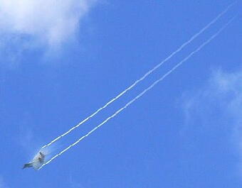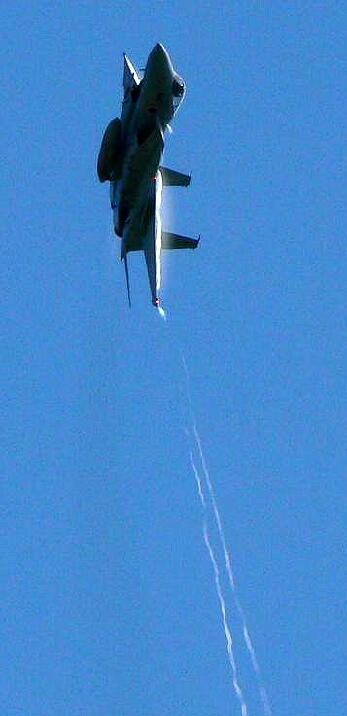 相当なGが掛かってる?(左)  アフターバーナー点火!  ベイパートレールがきれいです
