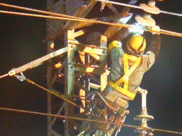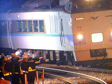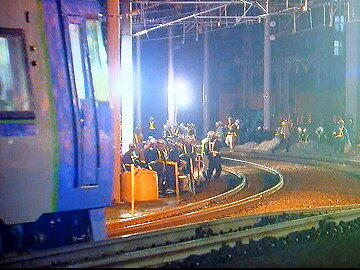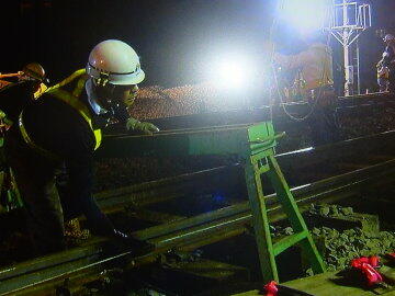 19:08発「オホーツク7号」が線路切替地点を通過している間にも、すでに工事が始まって いるようです。21時には線路閉鎖を行い。線路・架線の切替が夜通し行われました。