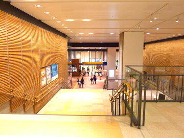 2Fコンコースから1F南コンコースを見る 1Fの改札口に向かう階段