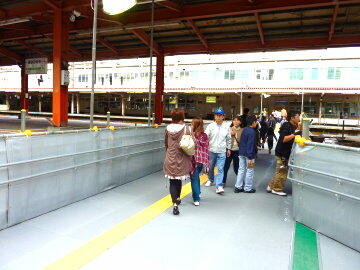 現在ところ西側連絡通路が最短で、東側通路はしばらく線路上の通路を歩かされるため少し長めである。いずれにし ても旧駅舎のホームを3本も横切るため、乗車するときは少し時間に余裕を持って行かないと乗り遅れてしまうかも知 れない。