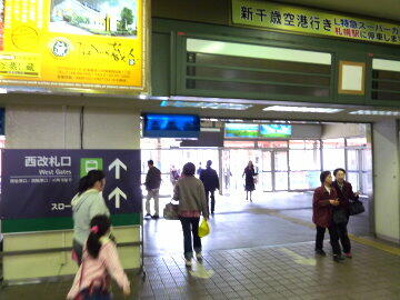 しかし、帰りの4番線名寄行きに乗ったら、富良野経由の快速が到着したのは3番線であった。乗り換えの都合で臨 機応変に変更するらしい。また5、6,7番線は特急専用のホームと思われます。感想としてはこの乗り換えコンコース は広く、案内も電光板で表示され、迷子になることは無さそうである。
