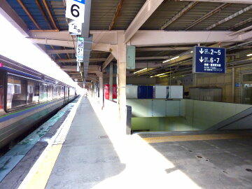 新駅は旧駅と同じ1番から7番ホームまであるのだが、不思議だったのがホームの番号の付け方である。旧駅舎は平 和通りの繁華街から1番ホームが始まっていたが、新駅舎では忠別川の方から1番が始まっていた。国鉄時代は駅長 室が近いところから若い番号が始まっていたのだが、今回は全く逆の付け方をしていた。この原則に従うと、もしかして 駅長室は南側にあるのかなと思ったりしている。