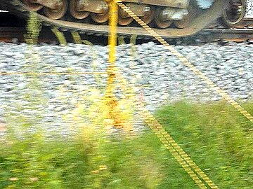 四条駅を出るとまもなく新旧線路の切換地点です 切換用のロングレールが置かれています