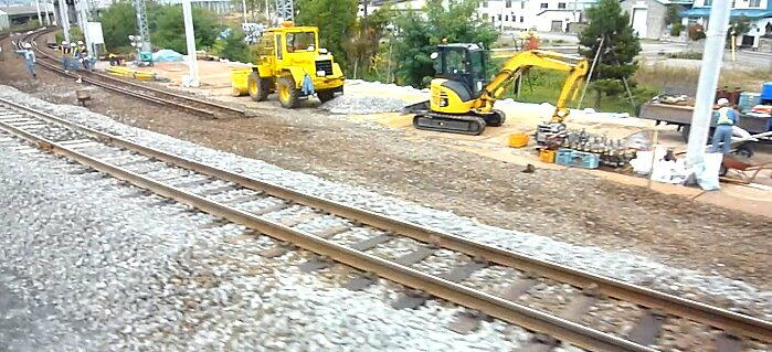 写真の通り、この箇所はロングレールが使用されていて、すこぶる乗り心地は良さそうでした。これから旧線の後始末 に入りますが、土盛り部分の後片付けは大分時間がかかりそうです。