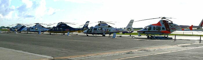 ズラリとラインアップしたヘリコプター。壮観です。