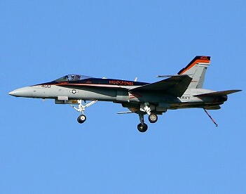 ギアダウンして低速飛行するF/A−18C