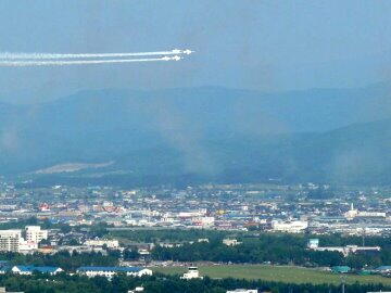 20分程度の演技も終わりブルーインパルスの編隊は旭川空港の方角へ消え去りました。