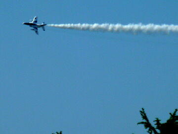 報道によると10種類ほどの展示飛行を行ったという。内容は市街地のせいか、垂直系機動は無かったのは残念で あったが、久し振りのブルーインパルスの演技に感動した。この日はイックンも札幌から駆けつけ、嵐山に陣取った。本 人の話だと少し撮影ポイントが遠かったらしい。それでも陸自の広報が撮影していたということなので絶好のポイントで あったことは間違いないようだ。