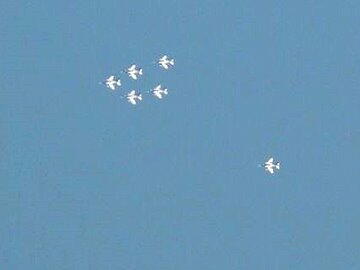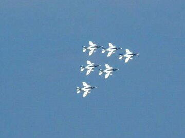 これだけ広げた隊形で一糸乱れずに旋回するとは感心するばかりです