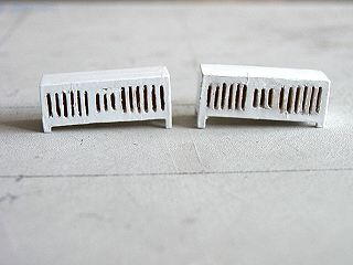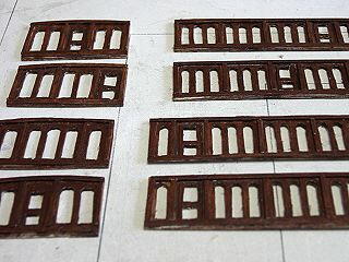 ところが、ナナなんと!出入口のドアは正面でなく左右の側面に2枚有るらしい。せっかく苦労して広げたのが無駄に なってしまった。また暇を見つけて出入口を再作成する羽目になるかも知れない。しかし、後部甲板の縁には飾りの付 いた手摺りが付くはずなのでこのまま少し待つことにする。
