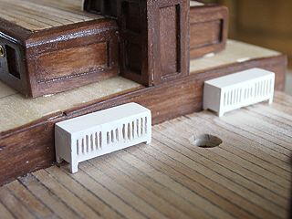 船首後部甲板縁には檜棒を半円に削って張り付け着色した。