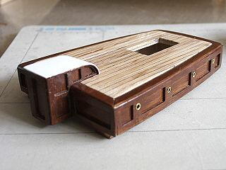 した。これで少しは平面図の形に似てきた感じがする。甲板もやや傾斜をつけてみた。