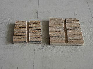 次に削った部材を20ミリの短冊を作り、瞬間接着剤で張り合わせた。化粧板の形については