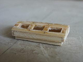 前部船室と中央部船室を切り取る。大きさはキットの大きさをそっくりに整えた。角は45度に切り