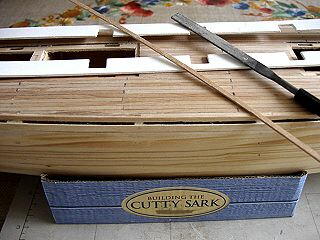 久し振りに船体本体の制作を行う。やはり細かい作業より大きなものが楽しい。今回はブルワークの貼り付けまでの 作業である。