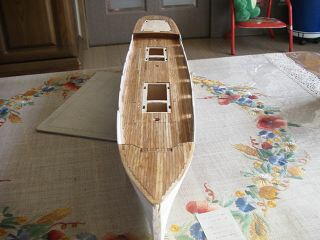 どの色を塗ってもいいと思うがチーク、オークでないことは確かである。ちなみに船室はジェルカラー(オーク)を使用した。このニスは素人にはもってこいの塗料である。ガーゼにしみ込ませてヌリヌリすれば色むらもなく塗ることができた。おまけに瞬間接着剤の上からもむらなく塗ることができたことは好都合であった。