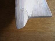 化粧板を貼る前に一応付属の水性パテを全体に塗って整形したが、このパテは一寸くせものであることがわかった。一般に水性塗料は一旦、硬化すれば水には溶けないが、このパテはすぐに元のように柔らかくなり、剥がれる恐れがある。そこで、元々化粧板が不要な位にきれいに仕上げてあったので、パテはほとんど削ぎ落としてしまった。