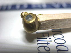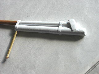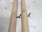 真鍮板を丸めて円筒 ヤードの留め具はフックを用いて円筒を挟み込む ヤードにL字形の針金