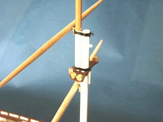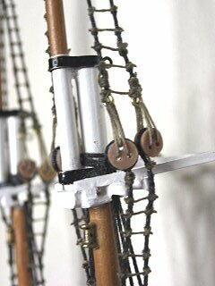 ようやくマスト周りに着手する。ヤードとマストの結合はデル仕様ではどのようになるか不明であるが、実船では風上に 切り上がるためヤードを回転できるようになっている。当船もヤードを固定しないで自由に動くようにした。ヤードの間隔 は本誌を参考にしてヤマ勘で決めた。