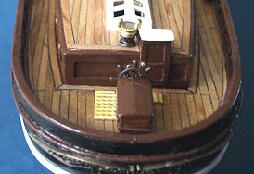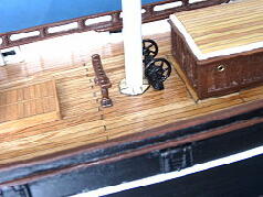 鐘は当時は重要な時間の合図用具なので、これがないとサマにならない。しかし、どの位置に着けたらいいのか不明 なので知ってる方は教えていただきたい。インターネットで調べると操舵手が鳴らしていたという説がある。そうするとコ ンパス付近かなと思ったりするが写真を見るとその付近には無いようだし・・・・。困りました。早く八点鍾を鳴らして組み 立てを終わりにしたいものです。