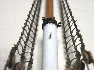 シュラウドはクロスツリーの間を通した。 デットアイ間隔はキットより少し詰めた