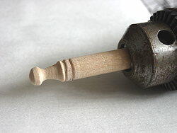 ドリルが回転しています 金色を塗って出来上がり キャプスターンの削り出し