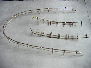 作り方はフックの穴に太い真鍮棒を通し、半田付けをする。ついで細目の真鍮をフックに一回ずつ巻き付けながら全部のフックに取り付ける。その後、ずれないように半田をで固定する。