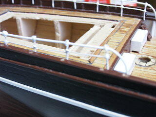 手摺りの完成、仕上げは白のラッカーを塗る 後部甲板に仮置きする