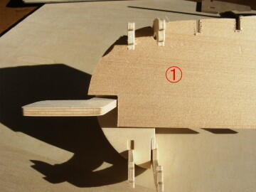 このリブは船腹の右舷側の開放部に蓋を嵌める予定で作成しました。