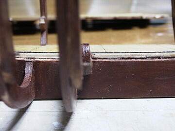 フレームと中、下層デッキ前、中、後にニスを塗る。色はチーク。ニスはいつも使用しているジェルカラーという製品で ある。このニスは布で染みこませる方法でムラが出ず、しっとりとしたツヤが出るのでお気に入りの一つである。