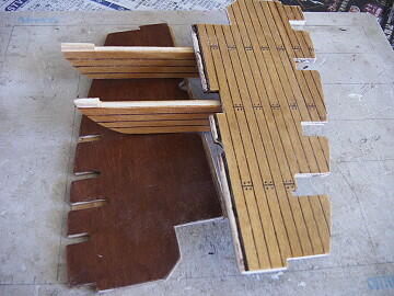 デッキは既に3枚貼り合わせてある。このような方法でも幅が半分なのでフレームにうまくに嵌る