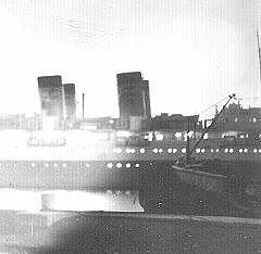 タイタニック号?違います。 青函連絡船です。このタイプはまだ蒸気船で石炭を焚いていた。 蒸気タービンなので全く振動がありませんでしたが、三等船室が貨車甲板の下にあり 貨物より乗客は下に見られていた?。窓は丸窓で喫水すれすれだったので、荒天時には 窓ガラス割れて海水の浸入を防止するため、鉄の蓋をねじ止めで締めていた。 船室にはボーイがおり、頼むとお茶のサービスがありました。チップは10円。 出港時の「蛍の光」と「ドラの音」は今でも懐かしく思い出されます。 青森駅と函館駅には赤帽がいて、客の荷物を運んでくれました。もちろん有料。 この船は洞爺丸台風で沈没した連絡船と同タイプで4本煙突が特長であった。(青森港にて)
