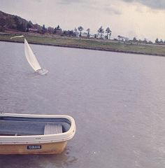 このヨットは三十数年前に制作したものです。当時ラジコン機を飛ばしていましたが、よく墜落させていたので費用もバ カにならないということで、墜落の心配のないヨットを制作しました。