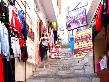 ショッピング街は砦のような建物をぐるりと取り囲むように設けられている。
