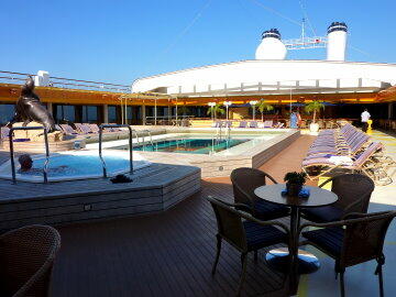 海で、明朝には最終寄港地イタリアのピレウスに到着する予定。