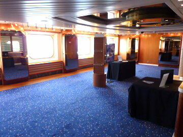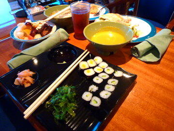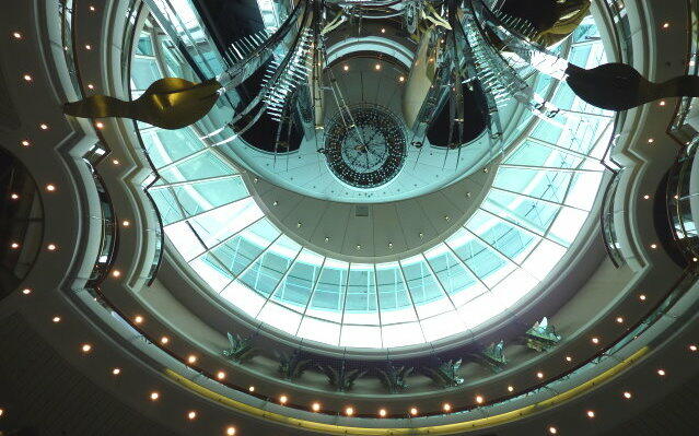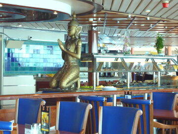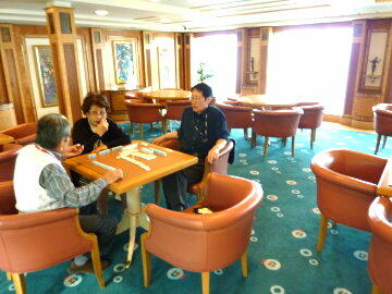 今日は済州島南部の名所を3カ所回り、18時頃帰船し、そのまま9階のビュッフェで夕食を摂る。その後、出航風