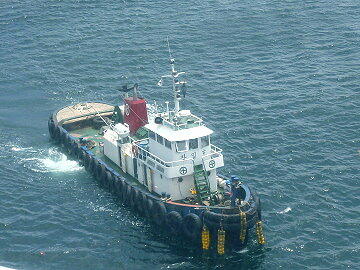 設の専用岸壁なのかのどちらかであろう。従って本船から桟橋までの数百メートルをテンダーボートを使用した。